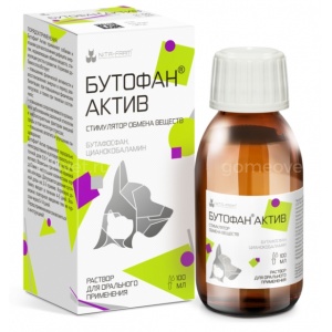 Бутофан Актив 100 мл - пероральная кормовая добавка для кошек и собак для восполнения дефицита энергии, нормализации обмена веществ, стимуляции физической активности и улучшения пищеварения.